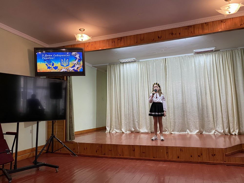 Саме з метою формування національної свідомості школярів, виховання у них почуття патріотизму та з нагоди відзначення Дня Соборності України учнями 8-А та 6-Д класів нашої школі організовано виховний захід «Незалежна і єдина будь навіки, Україно!».