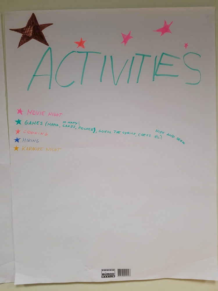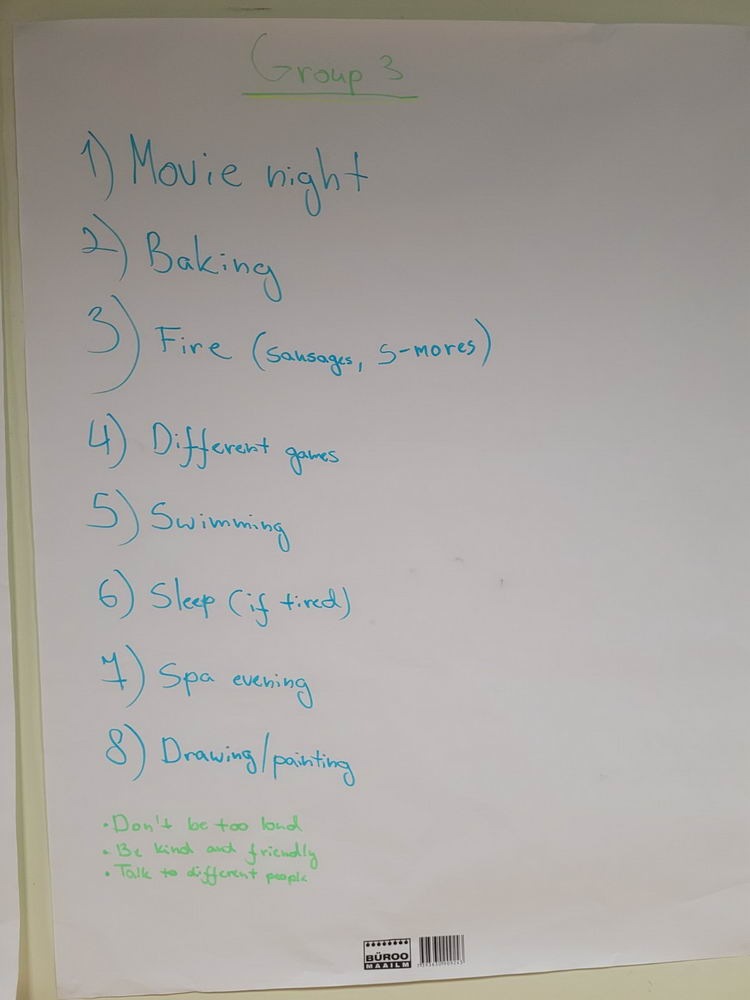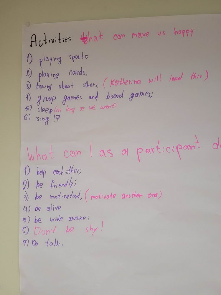 We were divided into four groups and we were looking for ways to make our stay here more interesting, better, listening to each of the participants.