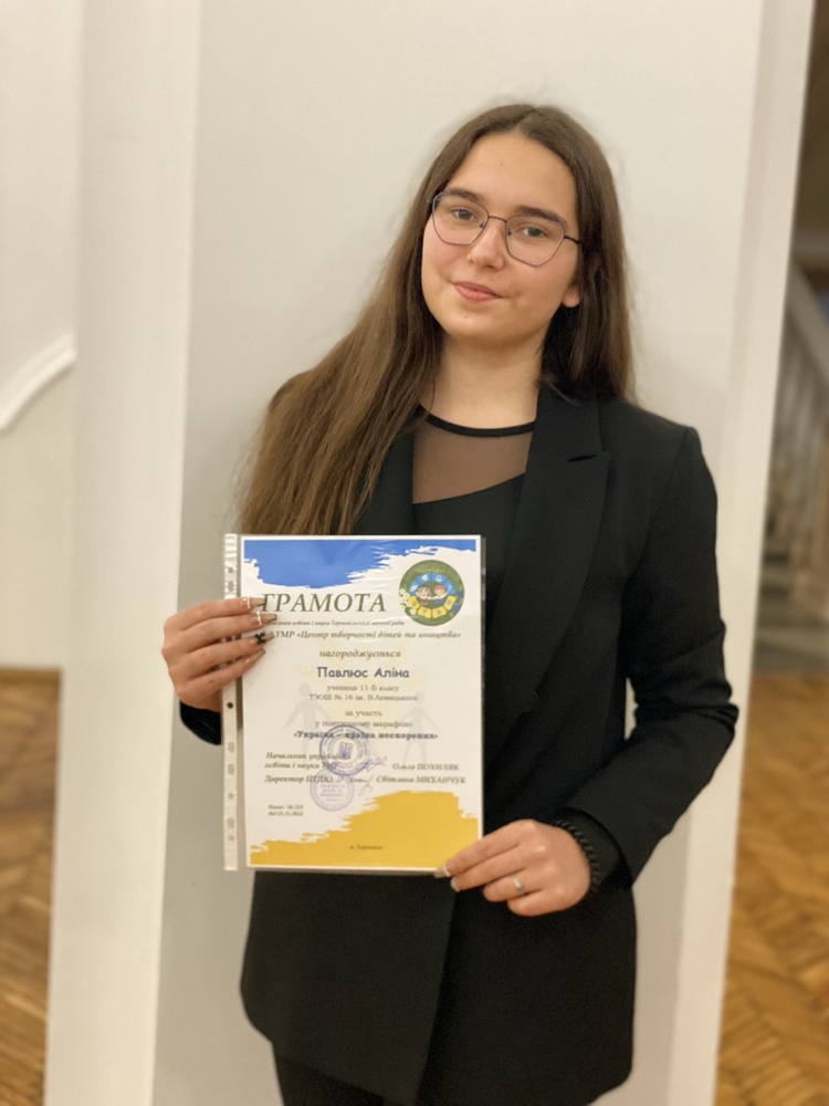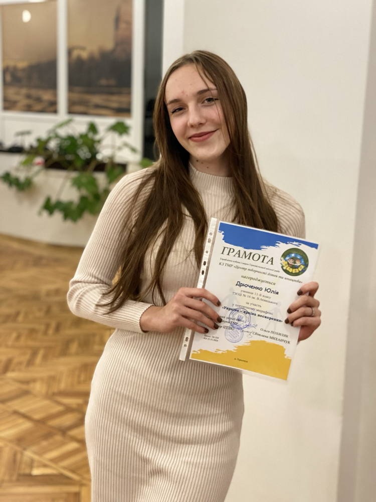 Метою цього марафону було сформування в молоді національно-патріотичного духу засобами літературного слова, виявити їх таланти та популяризувати творчість. Учні 11-Б класу ТЗОШ №16 Павлюс Аліна і Дрюченко Юлія виступили зі своїми авторськими віршами «Весна» та «Доторкнись мого серця, матусю…», продемонструвавши свою творчість, та непереможність України. Ми, українці, - талановиті, щирі, відважні, щедрі. Підтвердженням цього є осінній Марафон нескорених.